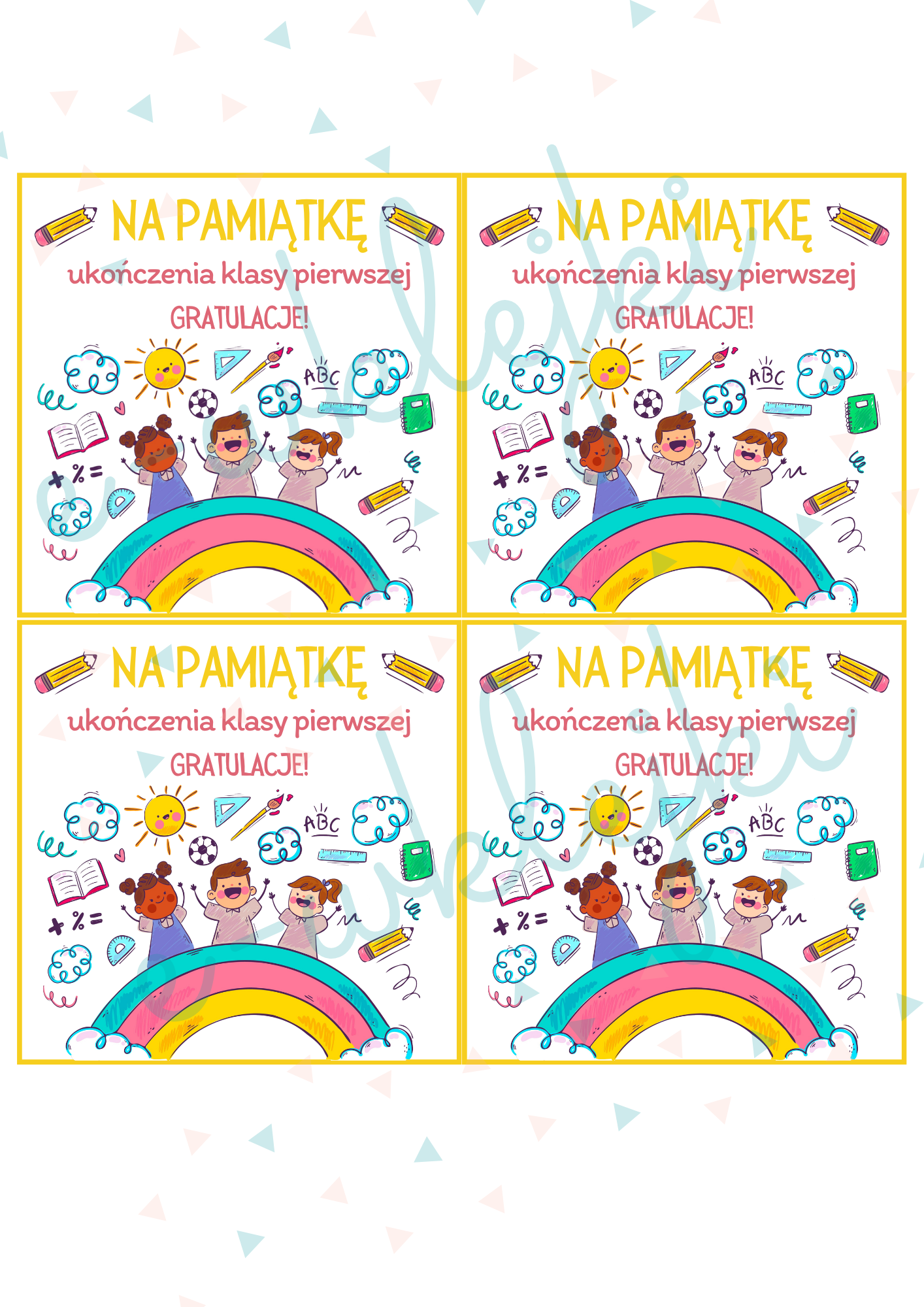 W zestawie - wzór dla klasy I, II oraz III - zarówno dyplomów, jak wklejek do książki.